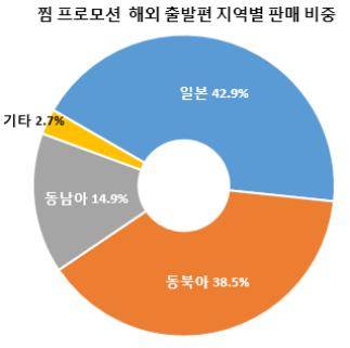 찜 프로모션 기간 판매된 항공권 가운데 가장 많은 판매가 이루어진 지역은 한국에서 출발하는 동남아시아 지역으로 전체 매출의 33.7%를 차지했다. 2위는 일본(21.5%), 3위는 괌/사이판(18.9%), 이어 중화권(13.7%) 노선 등의 순이었다.