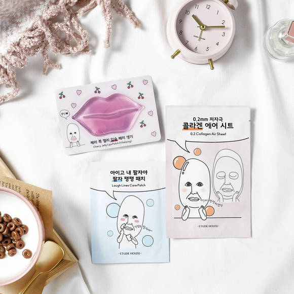 ‘아이고 내 팔자야 팔자 팽팽 패치’는 히알루론산 겔의 팔자주름 개선 패치로 집중적으로 탄력과 수분을 공급한다. ‘콜라겐 아이패치’는 콜라겐 에센스에 적셔진 탄력강화 시트로 수분과 탄력을 집중 공급해주는 눈가 전용 패치다. ‘체리 쪽 젤리 입술 생기 패치’는 체리추출물, 히알루론산, 콜라겐 3종 케어로 촉촉하고 생기 넘치는 입술로 가꾸어 준다.