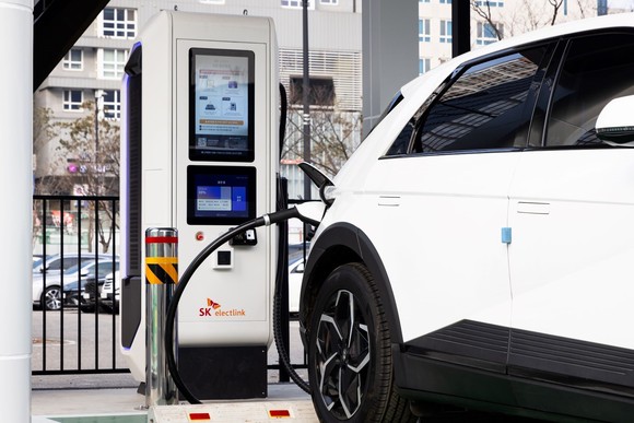 SK일렉링크 전기차 급속 충전기를 사용하는 모습. 사진=SK일렉링크