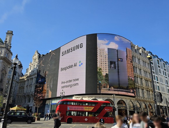 삼성전자가 영국 런던 피카딜리 광장에서 진행하는 ‘비스포크 AI’ 옥외광고. 사진=삼성전자