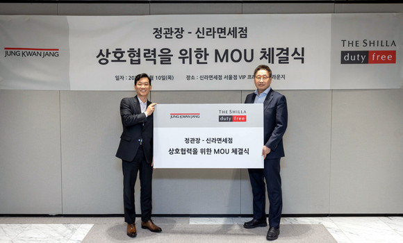 협약식은 한승규 KGC인삼공사 마케팅본부장과 김준환 호텔신라 TR부문장 등 양사 관계자들이 참석한 가운데 지난 10일 서울 중구 장충동 신라면세점 서울점에서 열렸다.
