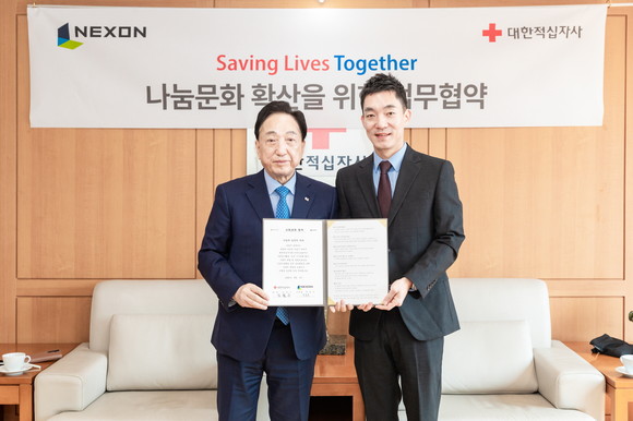 ㈜넥슨(공동 대표 강대현∙김정욱)이 대한적십자사(회장 김철수)와 ‘블루 아카이브’ IP를 활용한 ‘자원봉사 활동, 건전한 기부문화 확산, 사랑의 헌혈 장려’에 관한 사회공헌 업무협약(MOU)을 체결했다고 14일 밝혔다.