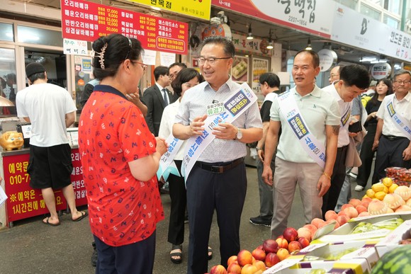 류경기 구청장은 동원시장에서 식재료 등을 구입하며 민생회복 소비쿠폰으로 결제하고, 시장 곳곳을 돌며 상인들과 인사를 나누고 현장 의견을 청취했다. 소비쿠폰 사용에 대한 긍정적인 반응과 함께, 이용에 따른 건의 사항도 경청하며 실효성 있는 정책 추진을 약속했다.