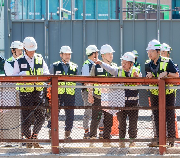 HDC현대산업개발이 지하 공사현장의 안전관리를 강화하고자 10일 인덕원~동탄 복선전철 12공구 현장에 대한 경영진 안전점검을 시행했다.