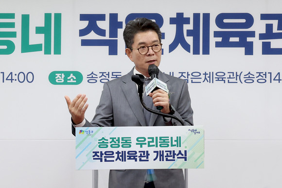 서울 성동구(구청장 정원오)는 지난 1일 송정동 지역 최초의 구립 체육시설인 ‘송정동 우리동네 작은체육관’(성동구 송정14길 19) 개관식을 열고 본격 운영에 들어갔다고 밝혔다.