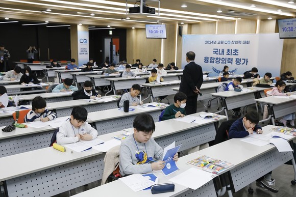 지난 2024 CQ 창의력 대회 2차 평가 현장에서 학생들이 2차 평가를 치르고 있다. 사진=교원그룹
