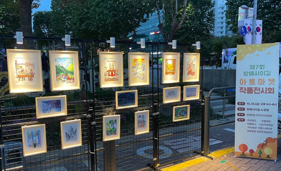 한편, 마실콘서트의 부대행사인 ‘아트마켓’에서는 방배사이길 미술학원과 방배본동 자치회관 수강생들의 작품을 전시하는 ‘사이길 반짝 전시회’가 열려 골목 속 작은 미술관을 거니는 듯한 즐거움을 선사한다.