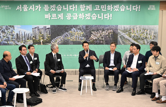 오세훈 서울시장이 16일 오전 10시 서울시청 간담회장(8층)에서 ‘서울시 정비사업연합회’ 소속 주민대표들과 ‘주택공급 활성화를 위한 민‧관정책협의회’를 개최했다.