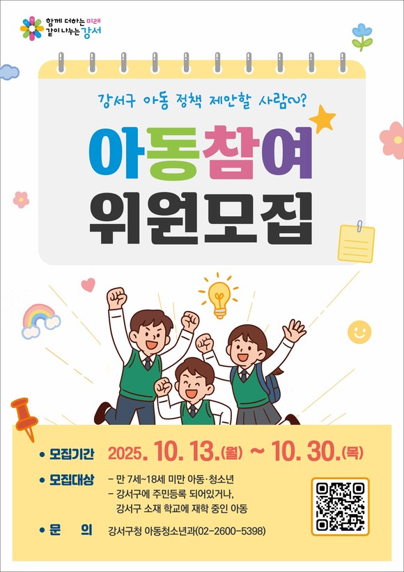 강서구, 아동들이 만드는 특별한 모임... 10기 강서구 아동참여위원회 모집