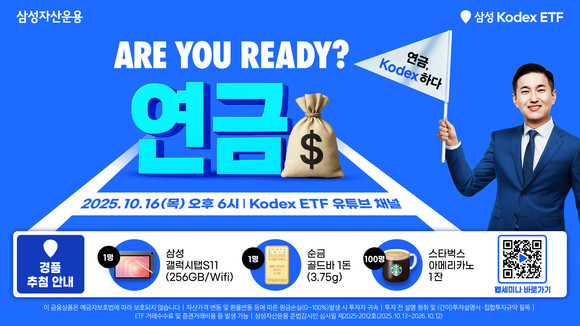 웹세미나 ‘연금투자, ARE YOU READY’에서는 실시간 질의응답과 함께 설문 참여자를 대상으로 삼성 갤럭시탭S11, 순금 골드바, 스타벅스 아메리카노 등 경품을 제공한다. 가이드북은 삼성자산운용 홈페이지에서 회원가입 없이 무료로 다운로드 가능하다.