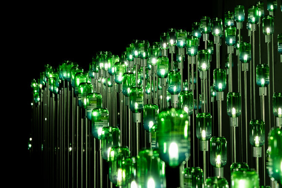 'Luminous Green'은 재단의 '버려지는 것들의 아름다움' 프로젝트의 일환으로 제작됐다. 아모레퍼시픽 그룹의 '아모레리사이클' 캠페인을 통해 수거한 화장품 공병을 조명 모듈로 재디자인해 인공적이면서도 유기적인 풍경을 구현했다. 특히 작은 초록색 화장품 공병을 빛을 머금는 조명갓 등 주요 소재로 활용해 지속가능성과 예술적 가치를 동시에 담았다.
