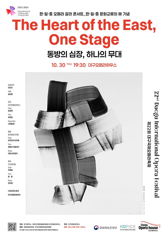 (재)대구문화예술진흥원 대구오페라하우스(관장 정갑균, 이하 ‘대구오페라하우스’)는 오는 10월 30일(목) 오후 7시 30분, 제22회 대구국제오페라축제의 특별 공연으로 <2025 한·일·중 오페라 갈라 콘서트 – 동방의 심장, 하나의 무대>를 선보인다.