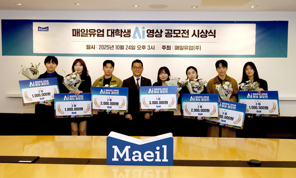 매일유업(대표 김선희, 곽정우, 이인기)이 지난 24일 금요일 서울 본사에서 ‘대학생 AI 영상 공모전’ 시상식을 열었다고 27일 밝혔다. 시상식에는 매일유업 곽정우 대표이사를 비롯한 임직원들과 공모전 수상자들이 참석했다.