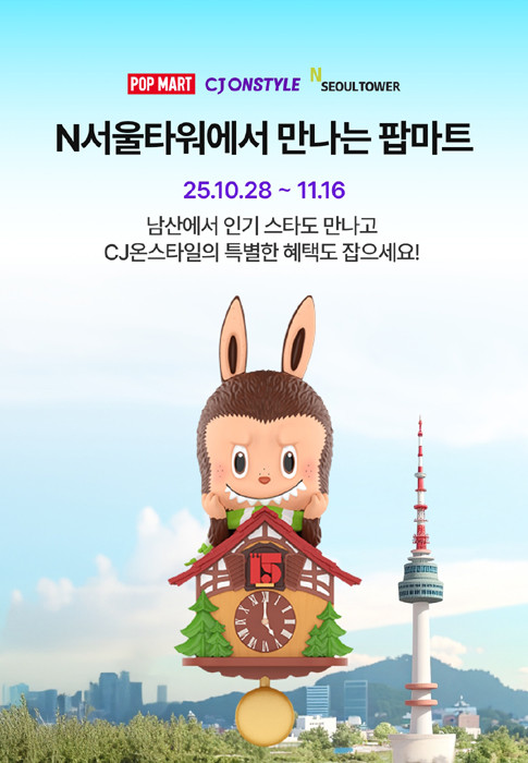 CJ푸드빌이 운영하는 N서울타워는 글로벌 아트토이 & IP 엔터테인먼트 브랜드 ‘팝마트(POP MART)’의 15주년을 기념해 CJ온스타일과 협업으로 다음달 16일까지 ‘팝마트 15주년 팝티 in N서울타워’를 진행한다고 28일 밝혔다.