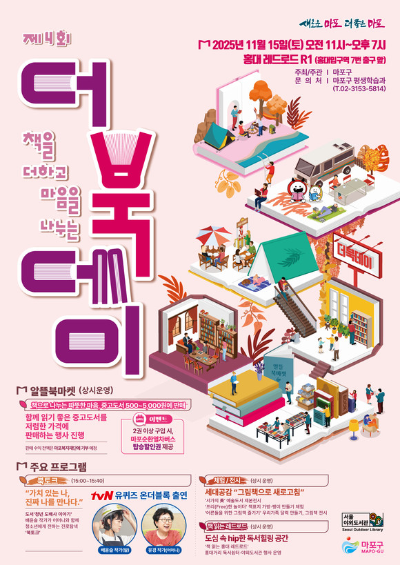 서울 마포구(구청장 박강수)는 오는 11월 15일(토) 오전 11시부터 오후 7시까지 레드로드 R1 일대에서 ‘제4회 더북데이’ 행사를 개최한다.