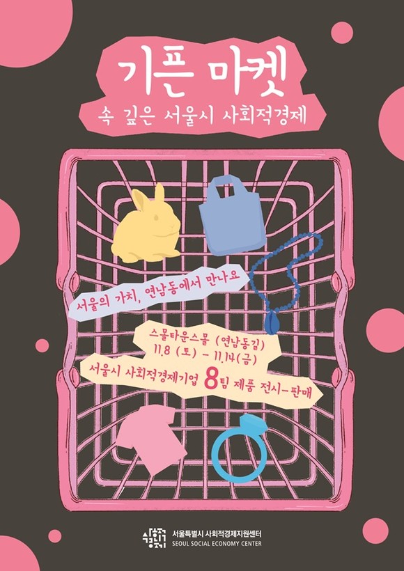 서울특별시 사회적경제지원센터(수탁기관: 미담장학회·서강대학교 산학협력단, 이하 센터)가 오는 11월 8일(토)부터 14일(금)까지 7일간, 연남동 소재 복합문화공간‘스몰타운스몰(Small Town Small)’에서 사회적경제기업 및 소셜벤처와 함께 팝업스토어 「기픈 마켓」을 운영한다.
