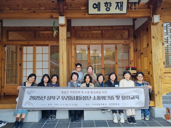 서울시 성북구(구청장 이승로)가 지난 11월 5일과 6일 양일간 4회에 걸쳐 우리옛돌박물관과 성북예향재에서 ‘2025년 성북구 우리동네돌봄단 소통워크숍 및 힐링교육’을 개최했다.