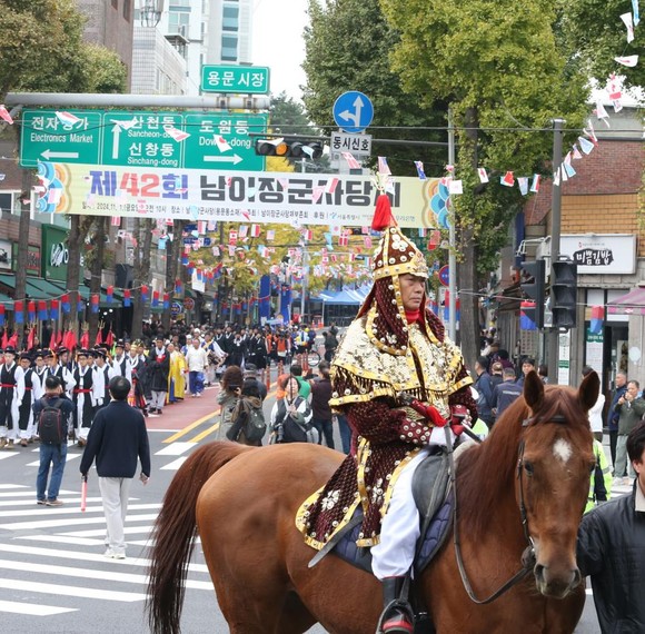 서울 용산구(구청장 박희영)가 21일까지 ‘제43회 남이장군사당제’(주관 남이장군사당제보존회) 개최 지원을 이어가는 가운데, 오는 20일에는 사당제의 꽃인 ‘장군 출진’ 재현과 당제·당굿 진행을 앞두고 있다.