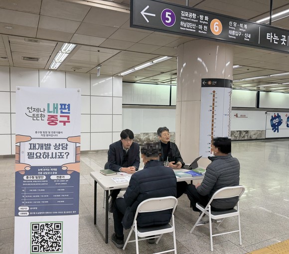 서울 중구가 퇴근길에 재개발 관련 궁금증을 손쉽게 해결할 수 있는 ‘찾아가는 지하철역 재개발 전문상담코너’를 청구역과 약수역 역사 내에서 운영해 큰 호응을 얻고 있다.