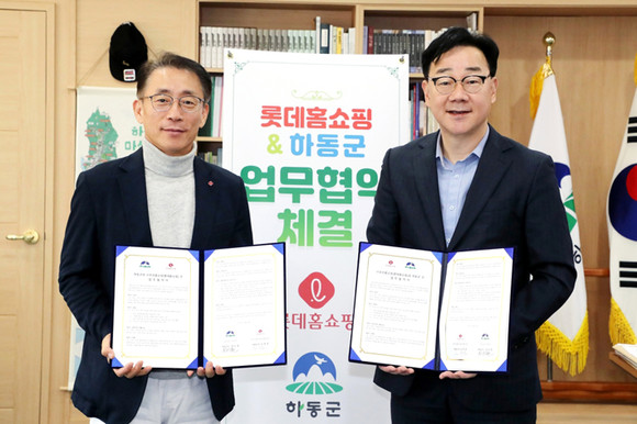 롯데홈쇼핑(대표 김재겸)이 지난 24일 경상남도 하동군과 사내벤처에서 탄생한 음료 브랜드 ‘엘:보틀(L:Bottle)’ 공동 개발을 위한 업무협약(MOU)을 체결했다고 25일 밝혔다.