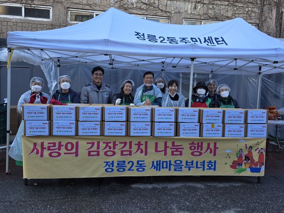 정릉2동 새마을부녀회(회장 이덕남)는 11월 21일 회원들이 직접 김장김치를 담가 독거 어르신 및 저소득 30가구에 전달했다. 이른 아침부터 회원들이 힘을 모아 절인 배추 손질부터 포장까지 정성스럽게 준비해 따뜻한 마음을 전했다.