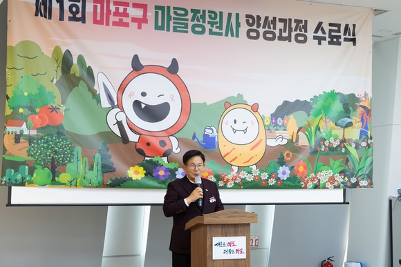 박강수 서울 마포구청장은 11월 26일 오후 2시 20분, 마포구청 12층 중강당에서 열린 ‘제1회 마포구 마을정원사 수료식’에 참석해 양성과정을 마친 주민들에게 직접 수료증을 수여하고 활동을 격려했다.