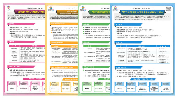 서울 강서구(구청장 진교훈)는 ‘생활안전보험’ 안내문을 한국어, 영어, 중국어, 일본어 4개 국어로 제작했다고 밝혔다.