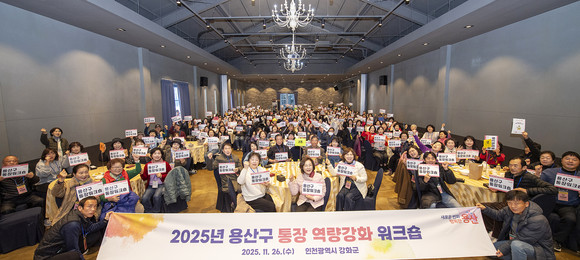 서울 용산구(구청장 박희영)는 지난 11월 26일 관내 통장들의 전문성 향상과 소통 활성화를 위해 ‘2025 통장 역량강화 공동연수(워크숍)’를 강화도 일대에서 개최했다고 밝혔다.