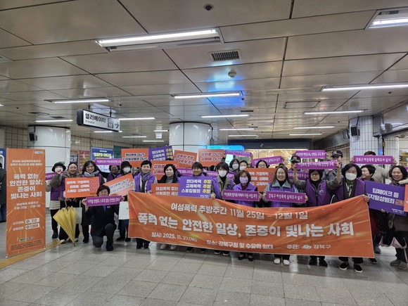 서울 강북구(구청장 이순희)는 여성폭력 추방주간을 맞아 지난 11월 27일 여성폭력 예방 인식을 높이기 위한 다양한 행사를 진행했다고 밝혔다.