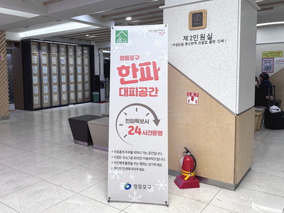 구는 한파 특보 발령 시 즉시 대응 가능한 체계를 마련하고 ‘한파 종합지원 상황실’을 운영해 현장 상황을 지속적으로 모니터링한다. 특히 버스정류장 등 유동 인구가 많은 곳에 온열의자 67개소를 추가 설치하고, 영등포구청 본관 1층을 한파쉼터로 신규 지정해 구민 불편을 최소화했다.