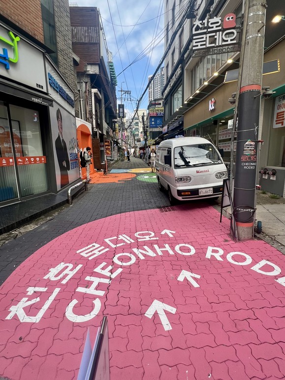 천호동로데오거리는 다양한 먹거리와 활발한 유동 인구를 갖춘 강동구 대표 상권이다. 최근 이어진 재건축·재개발로 젊은 층과 가족 단위 인구가 늘면서, 가로 환경 개선 필요성도 더욱 커진 지역이다.