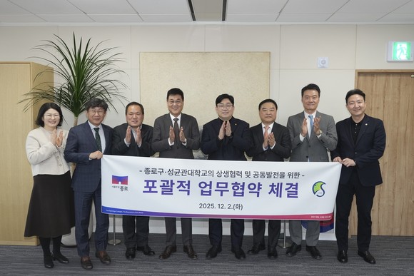 서울 종로구(구청장 정문헌)는 12월 2일 구청장실에서 성균관대학교와 지역사회 발전 및 미래 성장 기반 구축을 위한 ‘포괄적 업무협약(MOU)’을 체결했다.