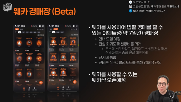 지난 11월 17일 진행한 공식 유튜브 방송 ‘캠파 LIVE’는 마비노기 모바일이 2025년 게임대상을 수상한 뒤 처음 마련된 공식 소통 자리였다. 이날 이진훈 디렉터는 12월 4일 ‘웨카 경매장’을 오픈해, 이미 단종된 전설 패션장비를 다시 거래할 수 있도록 하겠다고 밝혔다.