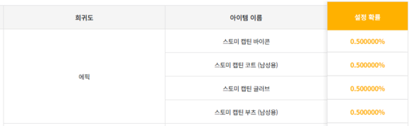 '마비노기 모바일' 내 패션 럭키박스의 에픽 패션장비 획득 확률.