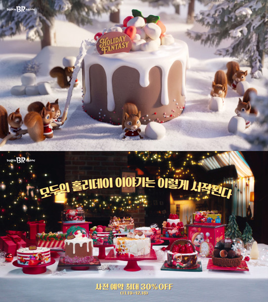 이번 광고는 환상의 공간 ‘케이크 원더랜드’ 속에서 다람쥐·고양이·사슴·토끼 등 캐릭터들이 배스킨라빈스의 크리스마스 케이크를 만들어가는 과정을 담았다.