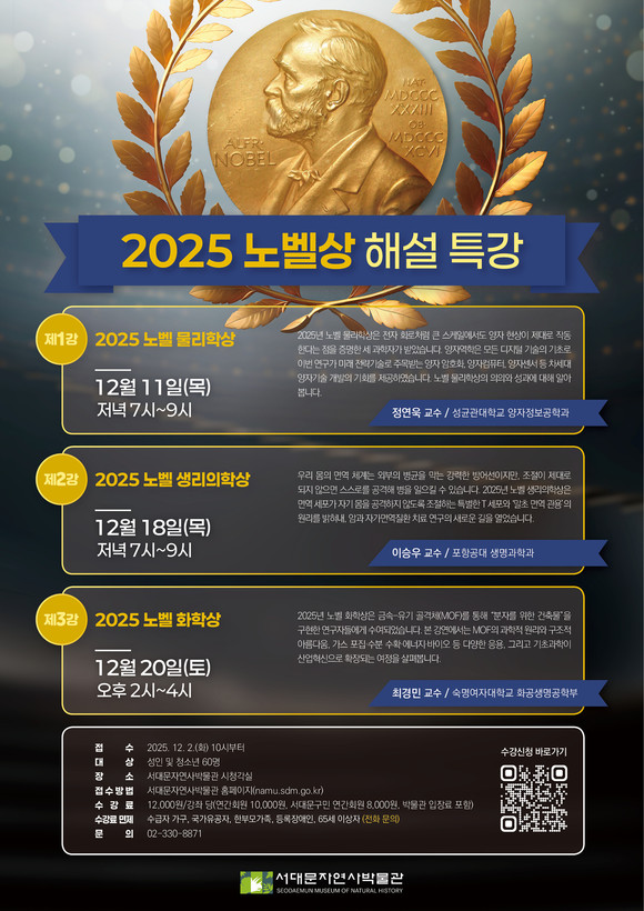 서울 서대문자연사박물관이 노벨상의 학문적 가치와 사회적 의의를 소개하는 ‘2025 노벨상 해설 특강’을 마련했다.