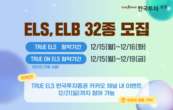 아울러 12월 21일까지 상품 출시를 기념한 고객 이벤트도 진행된다. 제시된 퀴즈의 정답을 맞힌 고객을 대상으로 추첨을 통해 이마트 상품권과 올리브영, 치킨 교환권 등을 제공한다. 이벤트 관련 자세한 내용은 ‘TRUE ELS’ 카카오톡 채널에서 확인할 수 있다.