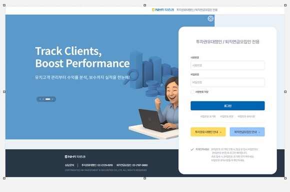 NH투자증권은 투자권유대행인과 퇴직연금모집인의 영업 및 관리 업무 효율화를 위해 전용 홈페이지를 구축하고 1차 서비스를 오픈했다고 15일 밝혔다.