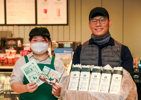 또한 패밀리 프렌들리 콘셉트 매장인 ‘세종예술의전당점’에서 어린이 동반 고객이 직접 텀블러를 꾸밀 수 있도록 제공되는 드로잉 속지 역시 우유팩을 활용한 친환경 소재로 제작했다.
