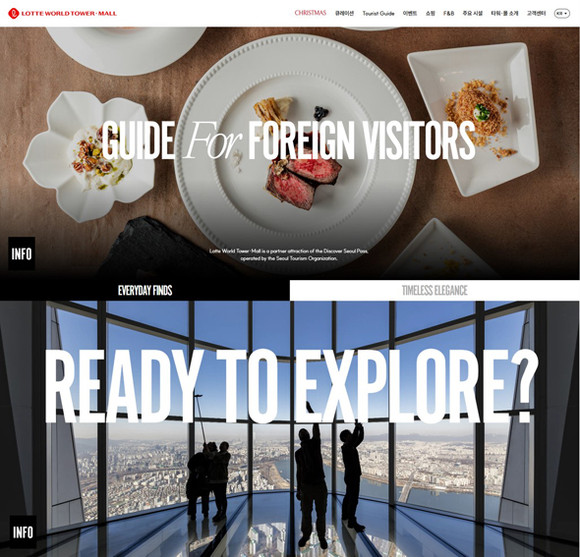 롯데물산은 롯데월드타워·몰 공식 웹사이트를 개편하며, 다양한 콘텐츠와 즐길 거리를 보다 쉽게 전달할 수 있도록 설계했다. 타워 이미지를 인터페이스의 일환으로 만들어 3D 상호작용을 통해 위치와 교통 수단별 접근 정보를 직관적으로 전달할 수 있도록 만들었다. 볼드한 이미지 중심 레이아웃과 간결한 폰트를 활용해 디자인 트렌드를 타지 않고, 몰입감 있는 비쥬얼을 제공한다는 설명이다.
