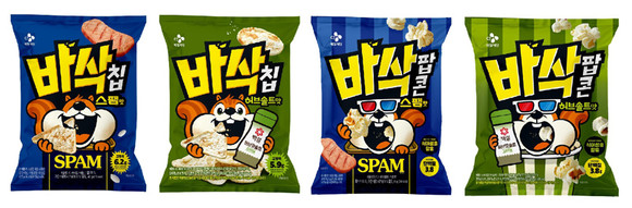 이번 신제품은 ▲바삭칩 허브솔트맛 ▲바삭칩 스팸맛 ▲바삭팝콘 허브솔트맛 ▲바삭팝콘 스팸맛 등 총 4종으로, 백설, 스팸과의 컬래버레이션으로 출시됐다.