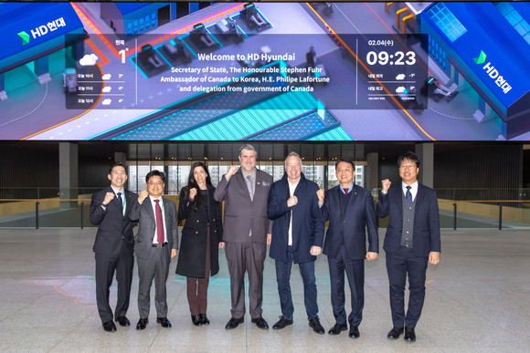 스티븐 퓨어 캐나다 국방조달장관과 필립 라포르튠 주한캐나다대사 일행이 4일 경기도 판교 HD현대 글로벌R&D센터를 방문했다.
