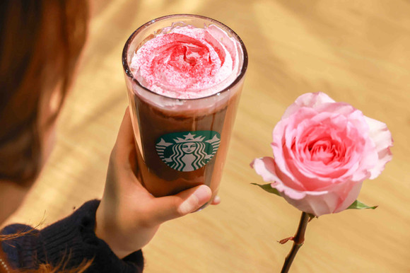 이번 시즌 대표 음료인 ‘붉은 로즈 초콜릿’은 붉은 장미꽃 한 송이를 형상화한 외관이 특징이다. 스타벅스가 앞서 선보였던 프렌치 바닐라 라떼를 재해석한 ‘에스프레소 크림 프렌치 바닐라 라떼’도 시즌 음료로 출시한다.