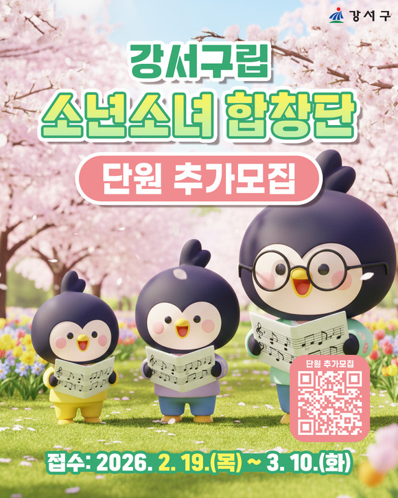 서울 강서구(구청장 진교훈)는 3월 10일(화)까지 ‘강서구립소년소녀합창단’과 함께할 단원 17명을 모집한다고 밝혔다.