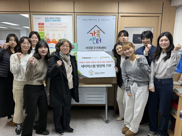 서울 서대문구(구청장 이성헌)가 위탁 운영하는 서대문구가족센터는 최근 글로벌 아동권리 전문 NGO인 굿네이버스를 통해 ㈜네이처스팜(대표이사 이재관)으로부터 관내 다문화·한부모 가족 및 아동 건강 증진을 위한 영양제 900여 개를 후원받았다고 23일 밝혔다.