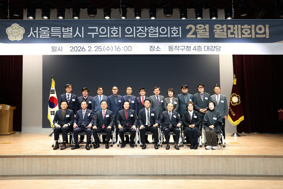 서울 동작구의회(의장 정재천)는 25일 동작구 신청사 4층 대강당에서 ‘서울특별시 구의회 의장협의회 2월 월례회의’를 개최했다.