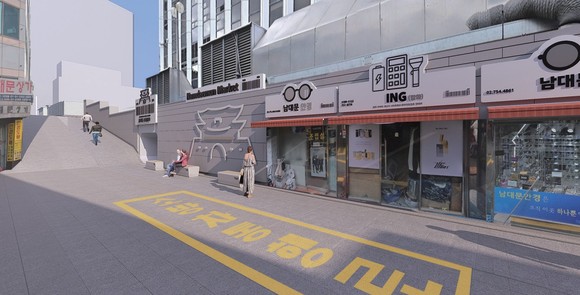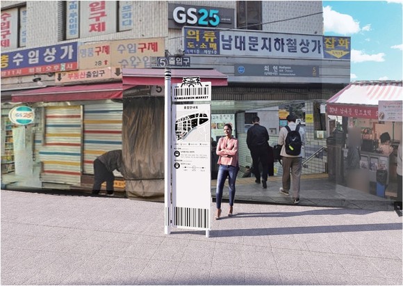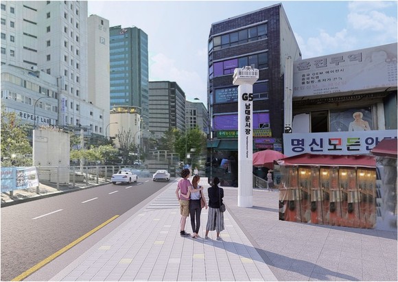시장 게이트 7곳에 통일된 디자인의 조형물을 설치하고, 1번 게이트 인근 두 곳에는 디자인 벤치 등 휴게시설을 조성해 시장입구의 상징성을도 강화한다. 아울러 숭례문수입상가 벽면에는 남대문시장의 정체성을 담은 특화 디자인을 입혀 시장 이미지를 한층 정돈할 계획이다.