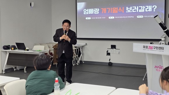 이번 프로그램은 3월 3일 밤하늘에 펼쳐진 개기월식에 맞춰 마련된 특별 관측 행사로, 초등학생 자녀를 둔 마포구 거주 가족 10가구가 사전 예약을 통해 참여했다.