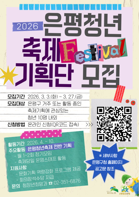 김미경 은평구청장은 “청년이 단순한 참여자가 아닌 축제의 주체로 나서는 과정 자체가 중요한 경험”이라며 “새로운 청년 축제를 만들어 갈 젊은 열정을 가진 청년들의 많은 지원을 바란다”고 밝혔다.
