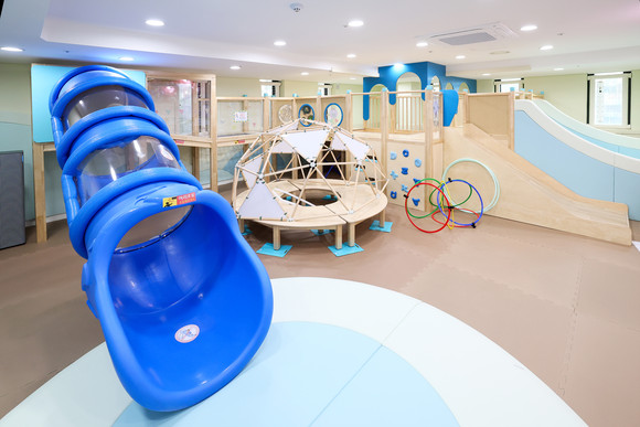 이곳 키즈카페는 266㎡ 규모의 공공형 실내 어린이 놀이시설로 ‘산과 물이 어우러진 도심 속 자연 동산’을 주제로 꾸며졌다.
